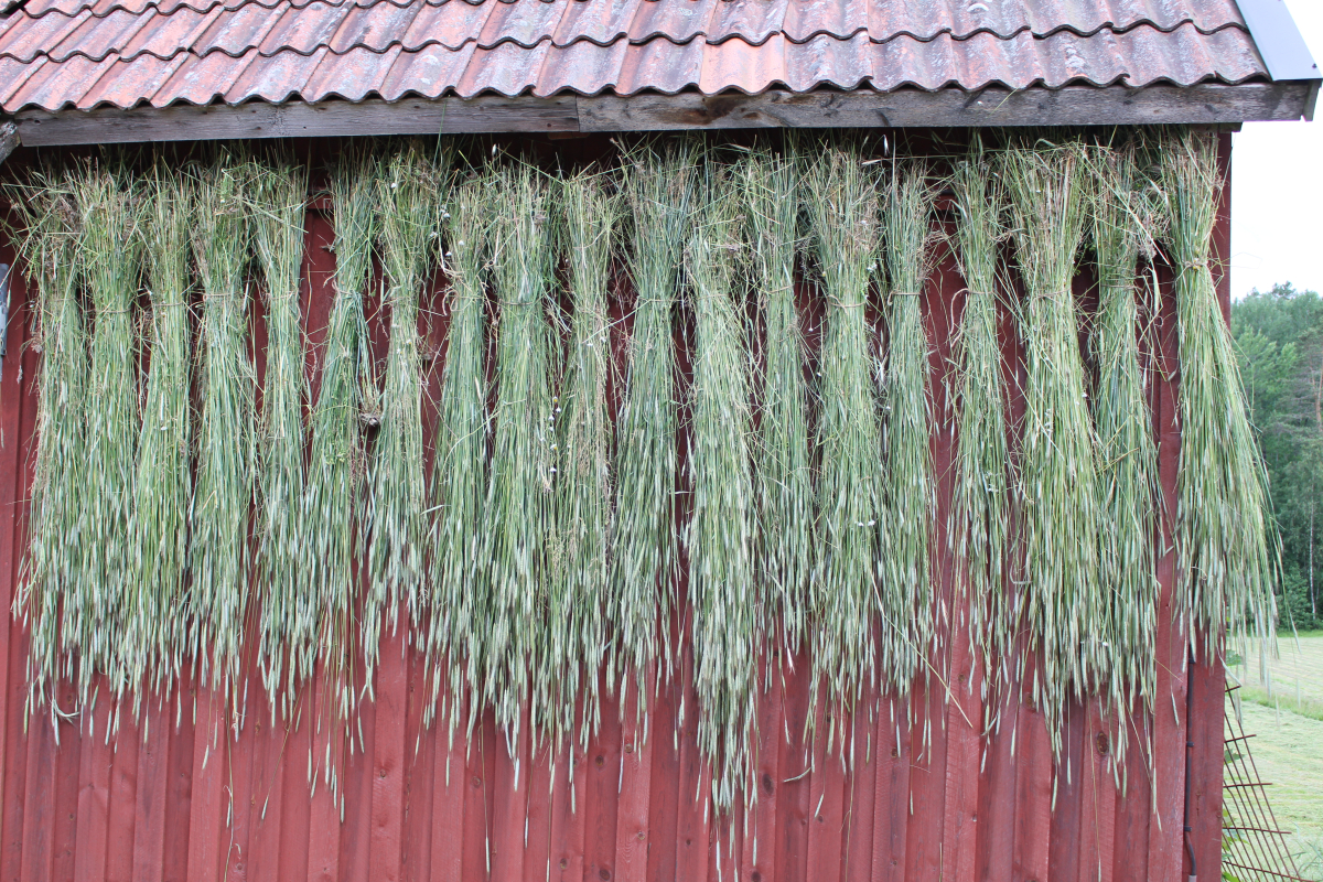 Vi hjälps åt och tillsammans går vi igenom hur en rensar samt sorterar halm.